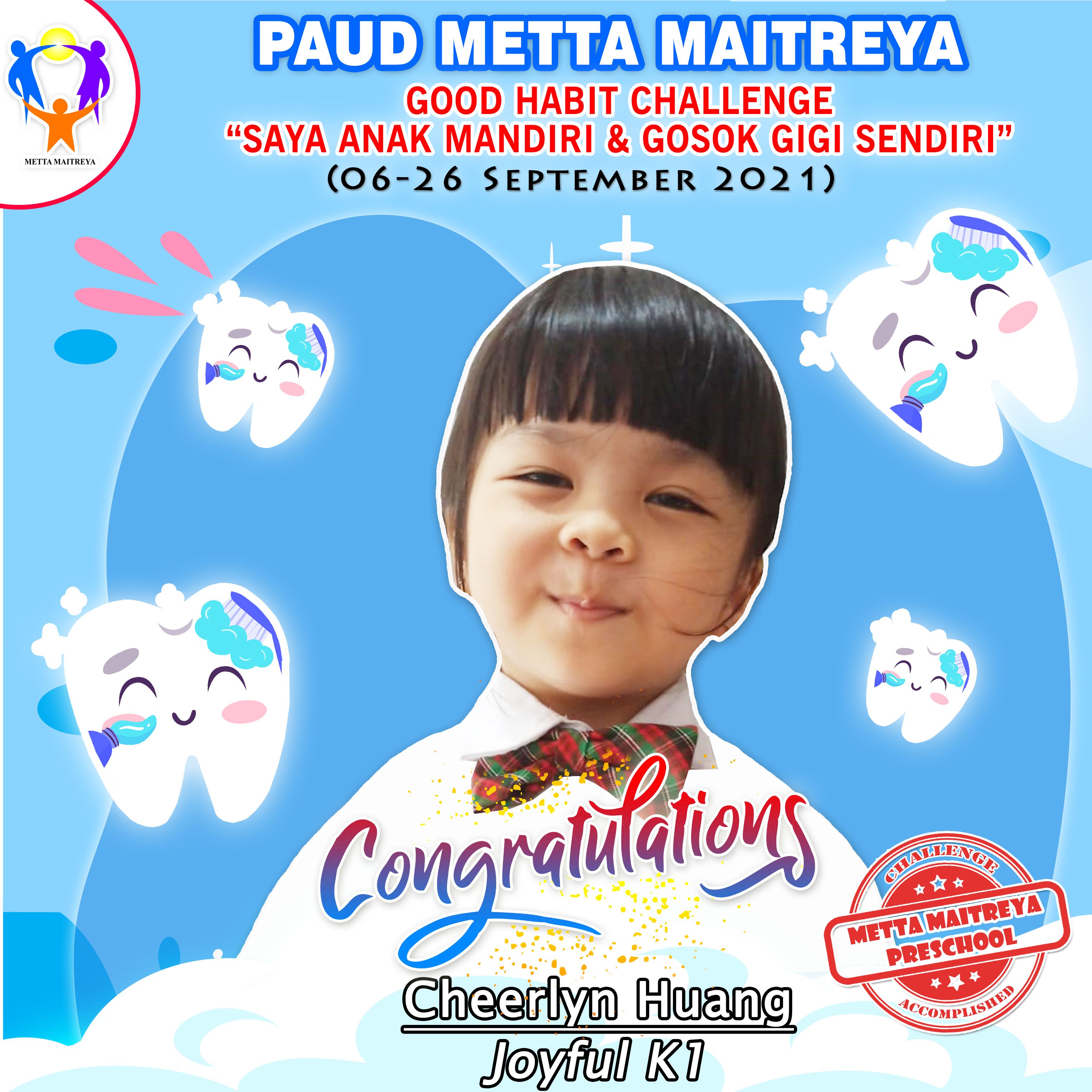 Pemenang Challenge "Saya Anak Mandiri & Gosok Gigi Sendiri" | PAUD METTA MAITREYA